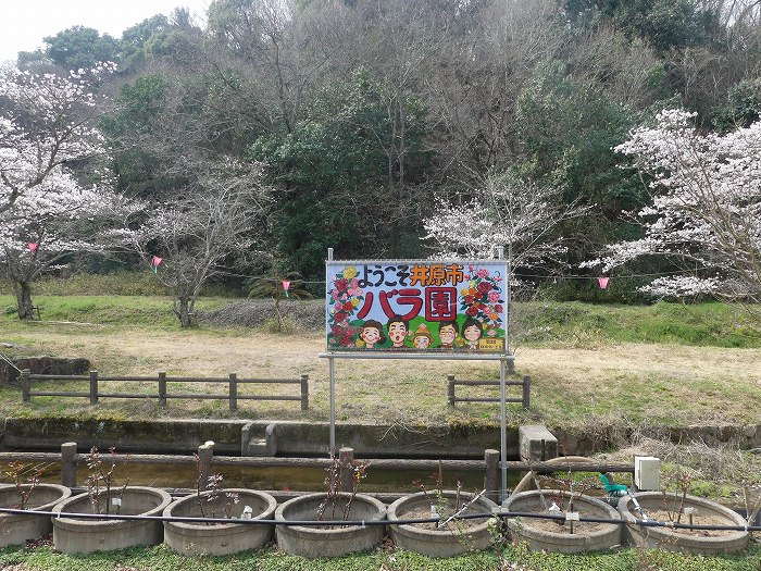 バラ園と桜。