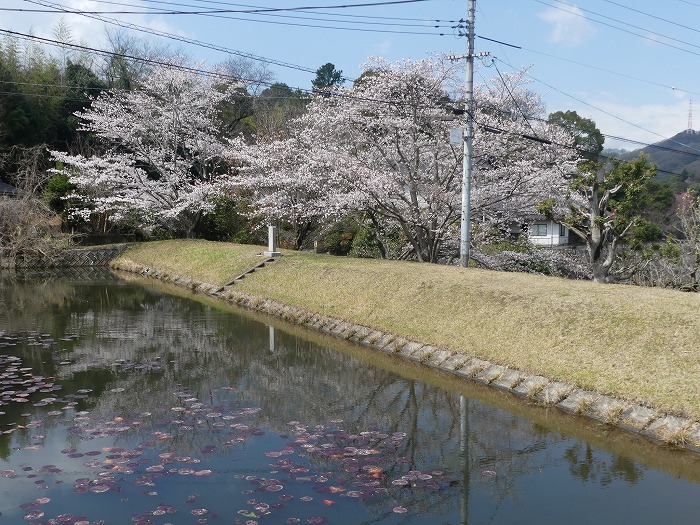 池迫池から城見小学校を望む。