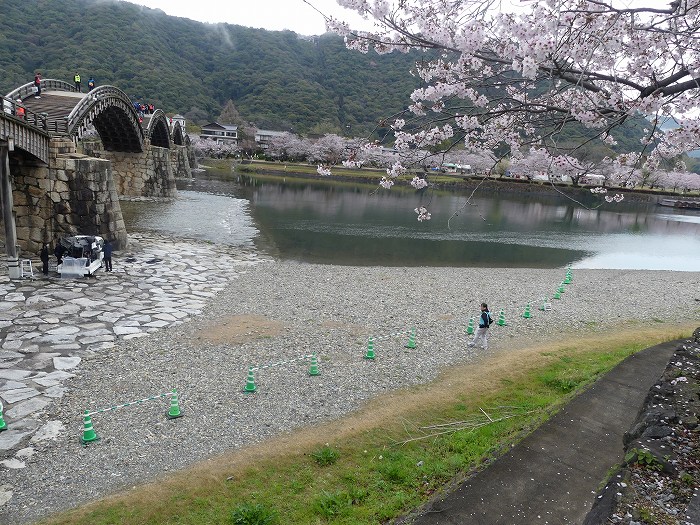 では、橋を渡って岩国駅行きのバス停に行こう。