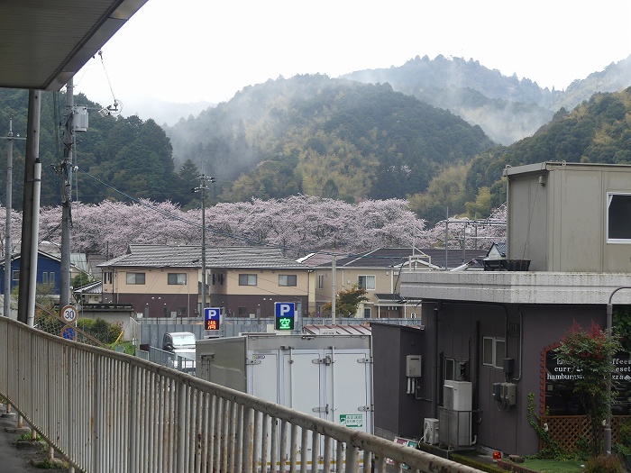 錦川鉄道の駅ふきんの桜は満開だ。