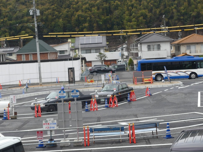 写真↓のようにバス停もタクシー乗り場も工事で仮の乗り場。