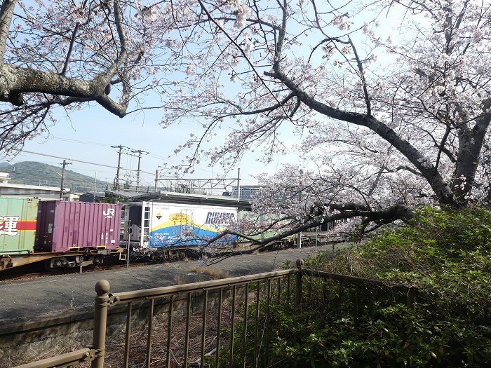 金光駅を貨物列車が通過する。
