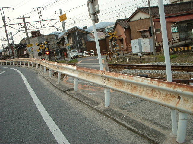 くじば駅で降りた人はココで笠商・笠高と分かれた。 隅田川のこの付近には大きな楡の木があったが去年なぜか切られた。 さらに走って伏越に行く。 伏越の踏み切りをわたる。 伏越の踏み切りをわたろうとしたら遮断機が降りた。それで笠岡方面を見る。
