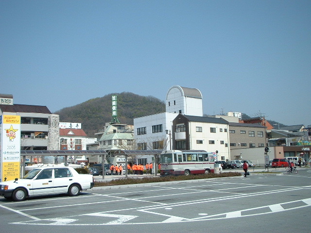 駅前には青いジャンバーに鉢巻の人が多数いた。