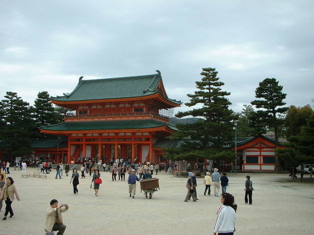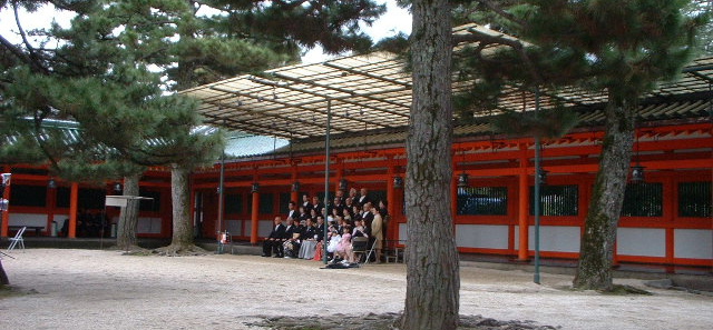 平安神宮では結婚式の記念写真を撮っていた。