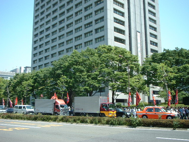 財務省の向かいの歩道から”○○するなー!””××はんたい〜!”の声。