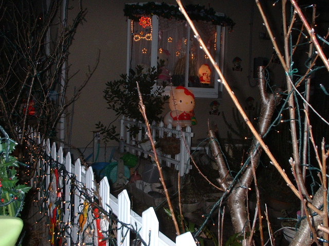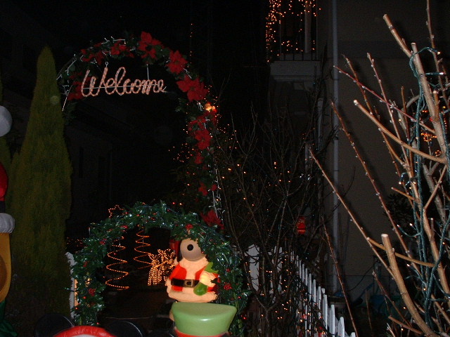 庭に高いアンテナがある、それがこの季節の夜には巨大な満艦飾ツリーと変身する。