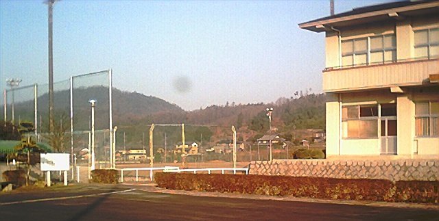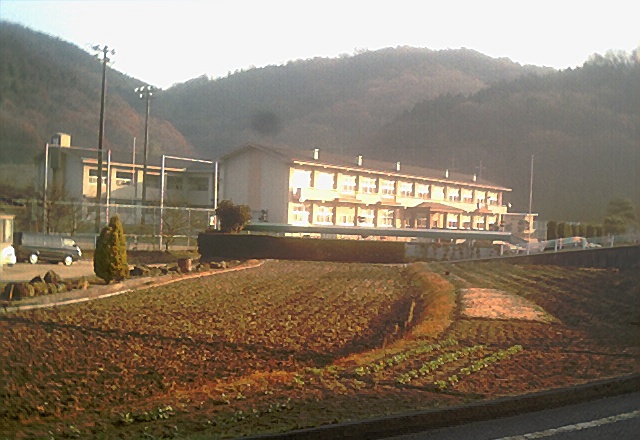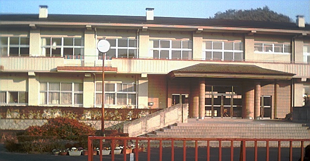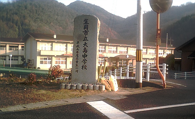 農協から上り坂になる、するとすぐそこに大島中学が見えてくる。
