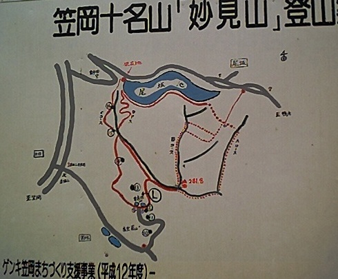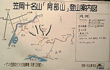 が多くの「登山案内」の標識をだしている。「阿部山」「妙見山」「竜王山」。