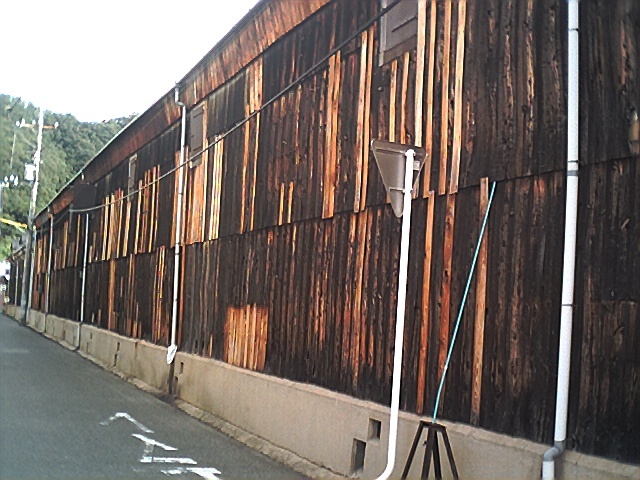 会社の名前は知らない・・前川製材だろうか?・・が板貼りの倉庫。