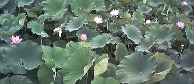 ハスの池には母娘の二人連れがカメラをもって花を見ていた。