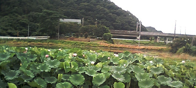 ハスの花の池は道路沿いにある。この道路はえいちゃんの通勤道でもある。