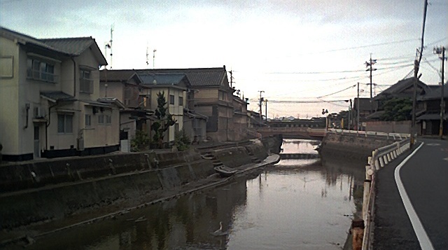 今朝は干潮で海に流れていた。