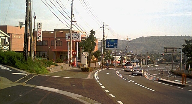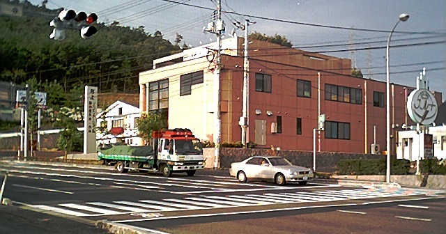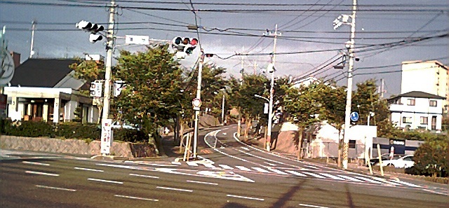県道信号からハイランドを見る。右より喫茶フルート・村上脳外科・美容ティーノ。