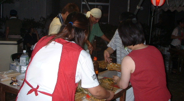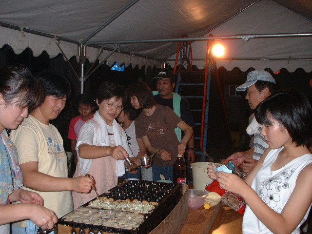 地区の人が大人から子供まで、男女あわせて↓タコ焼をしたり。