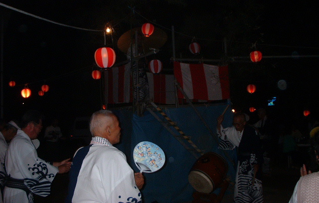 市長は背広姿、議長は浴衣・踊っていました。”票”がいる人はたいへんだな。