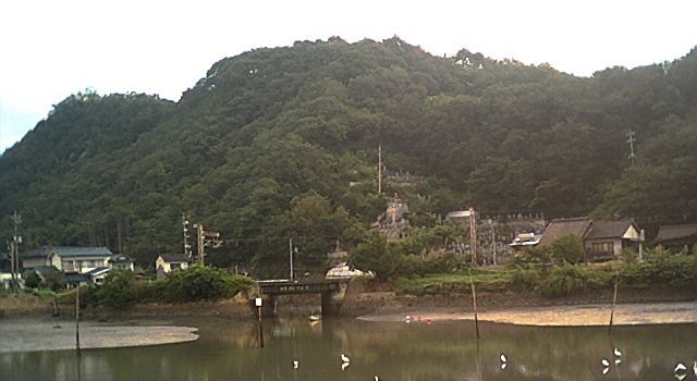 湾頭から見る山陽線。金浦小学校の建物が近い。