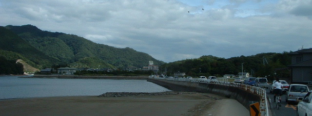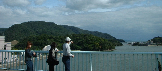 神島大橋のうえにはここから天神様の写真を撮ったり、見たりの人10数人。