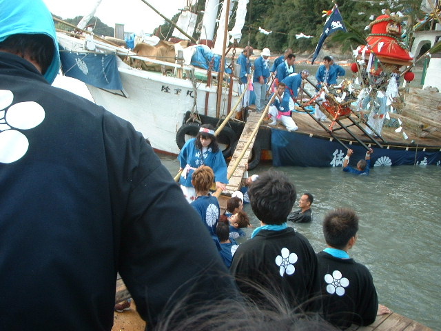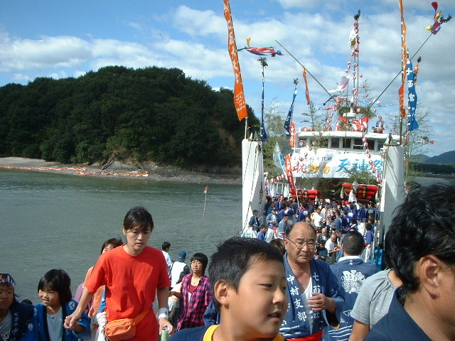 最初に男女の氏子が下船。