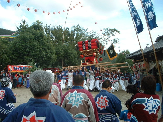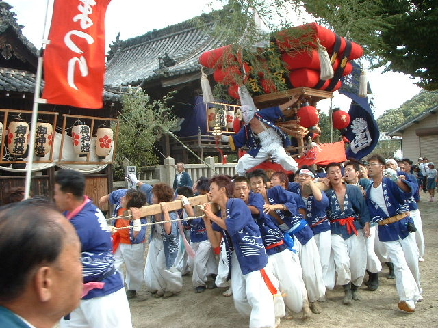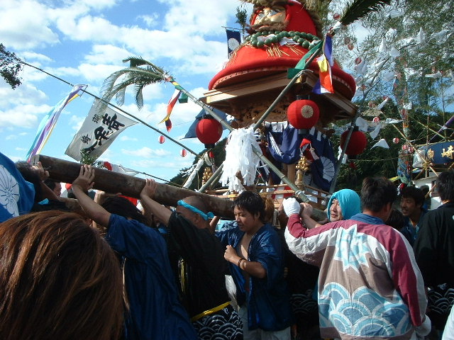 中村地区は「明倫団」と名のる。神輿は「七面宮」、今、海に面してないが最近船を復活させたそうだ。