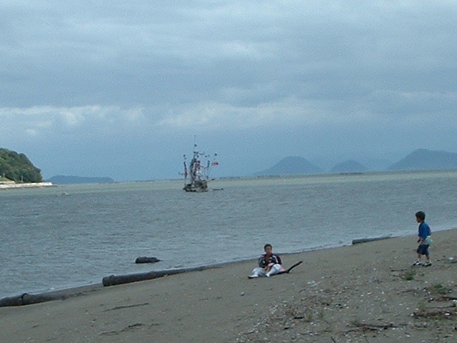 天神さん前の砂浜から見る瀬戸内海。