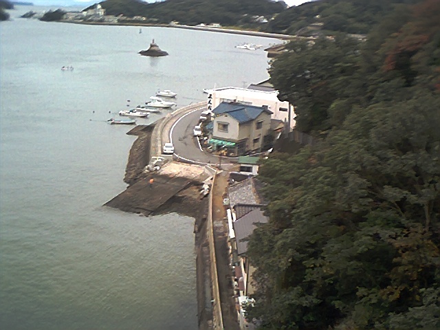 橋から下りて神島の旧渡船場へ行く。そこから横島を見る。