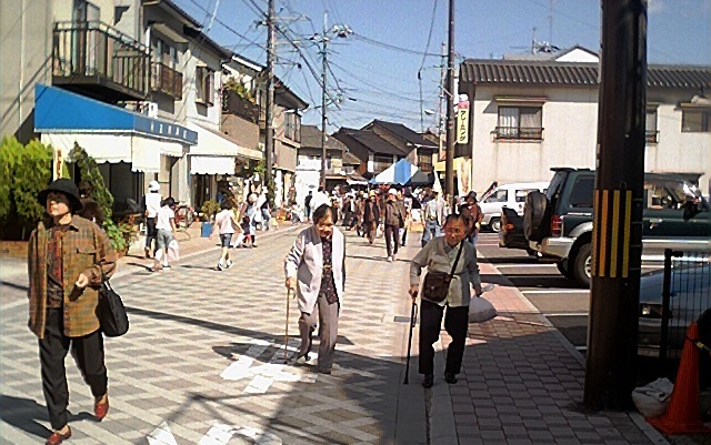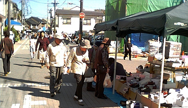 それでもこうして縁日の日曜日の秋晴れ。けっこう老人、(といっても老女)が歩いている。
