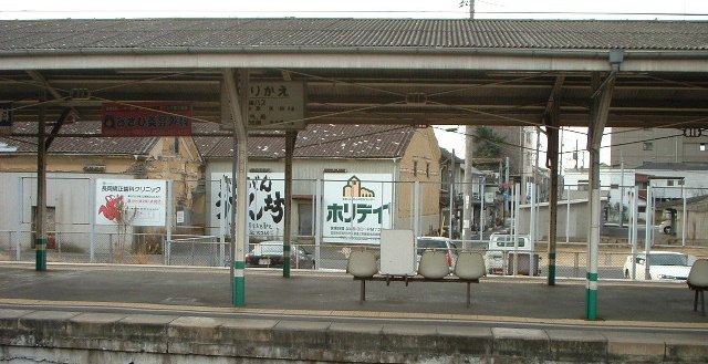 笠岡駅のホームから南方向、写っているのは下りのホーム。