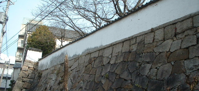 山陽放送から城下通へ行く道、そこには石山門の石垣が残っている。