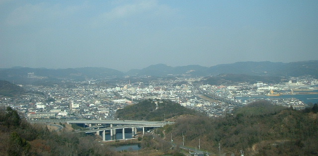 ホテル裏側こ行けば児島味野の市街地がみわたせる。