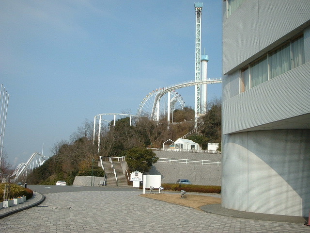 ホテル玄関前に降りると鷲羽山ハイランドの遊園地が近接してあった。