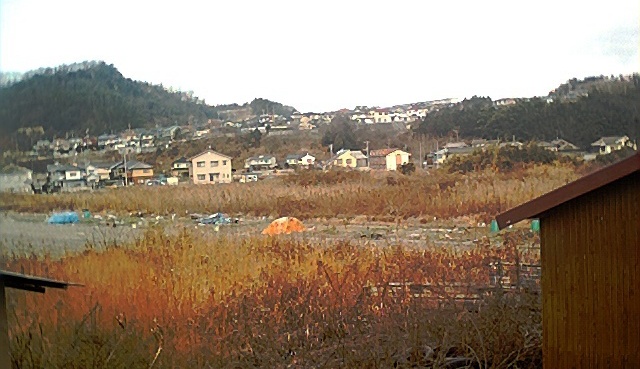 旧堤防の道路から旧塩田地をみれば、ところどころミニ団地ができ、吉浜との境の山の上には「旭が丘」団地がある。