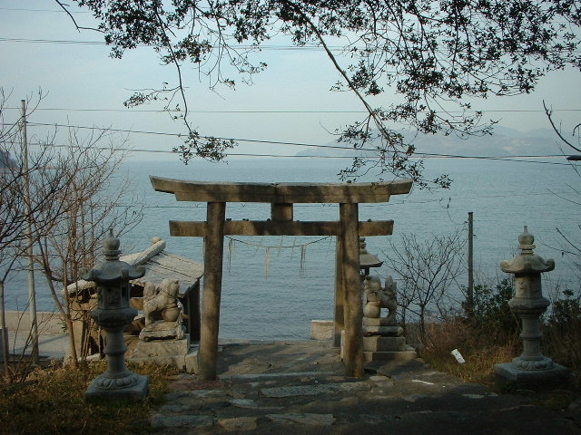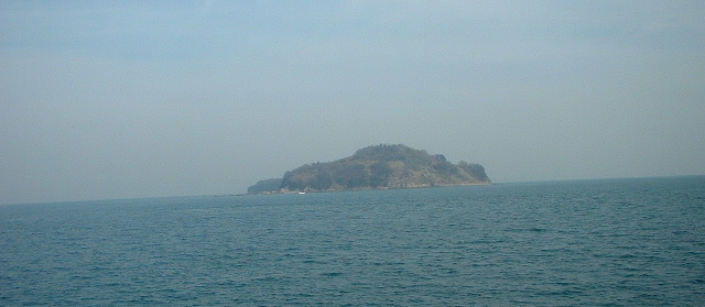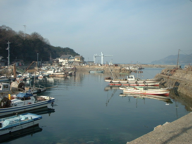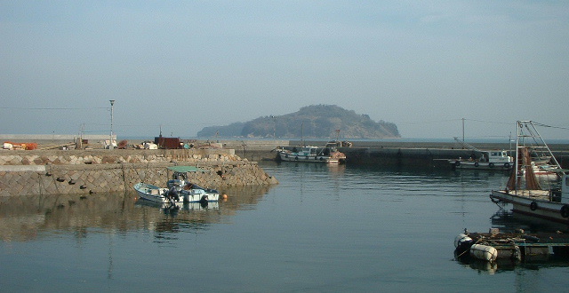 岩坪の港から東を見れば小島が二つ並んでいる。