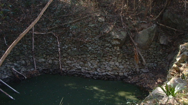遍路道に沿って石垣の池があった、井戸だろうか、なんだろう?