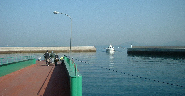 漁師さんに手を振りながら桟橋に歩いた。