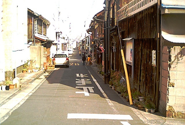 「新町通」、古い民家土蔵が点在して何百メートルか続く。