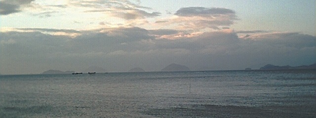東の海のむこうにには川鉄の製鉄所の煙がもうもうと上がっている。