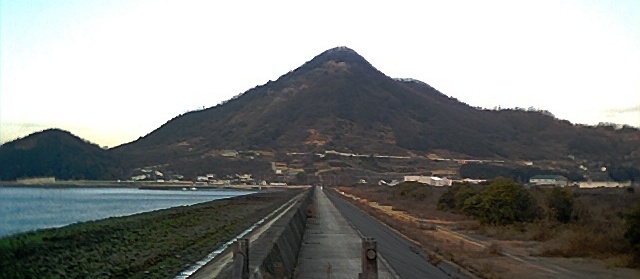 干拓堤防のうえを1キロくらい走ると島に着く。