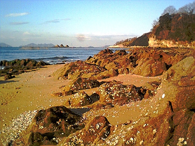 瀬戸内海では(島をのぞき)こういう自然の海岸線が今や本当に珍しい。