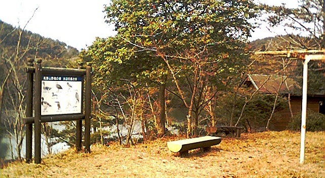 池には野鳥の観察小屋があり、その前にこの池にいる鳥の案内板があった。