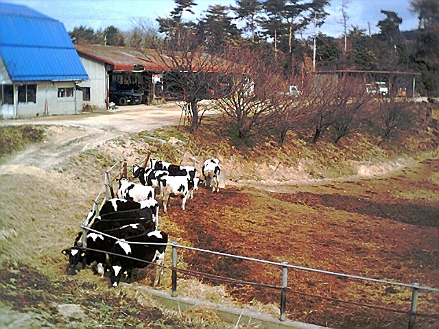 軽トラから降りたおじさんが牛たちを見張ってくれた。