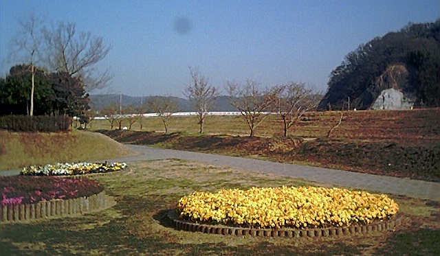 金崎橋の手前、太陽の広場には三色すみれの花がきれいに咲いていた。