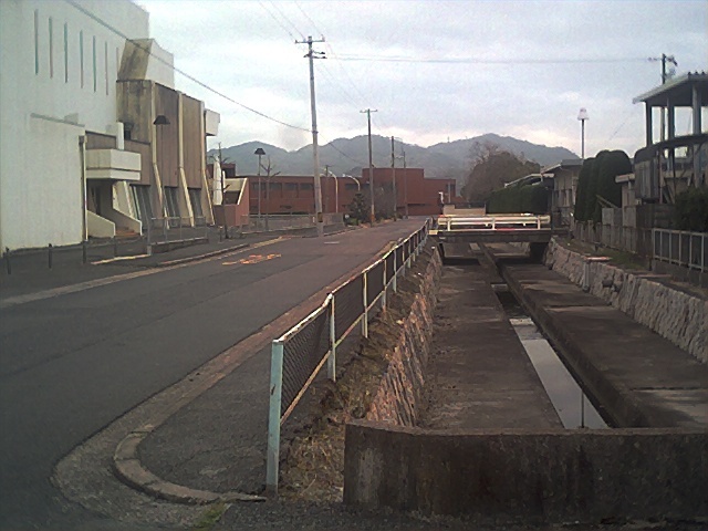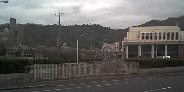まず市民会館と県振興局の間の道路。市民会館側には桜の木。