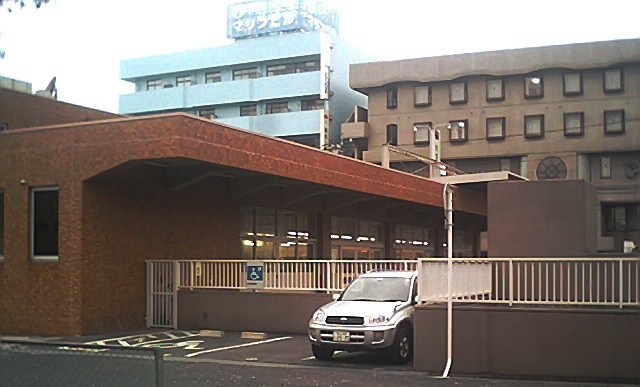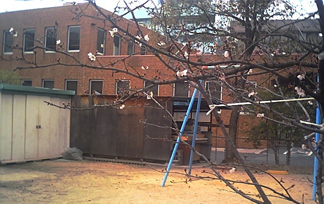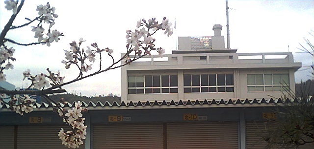でも近接する児童公園の桜はすこし咲いていた。そこから郵便局を写した。