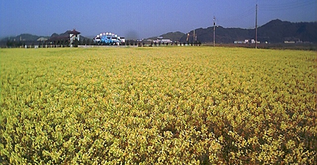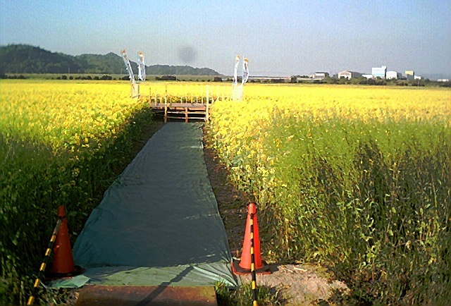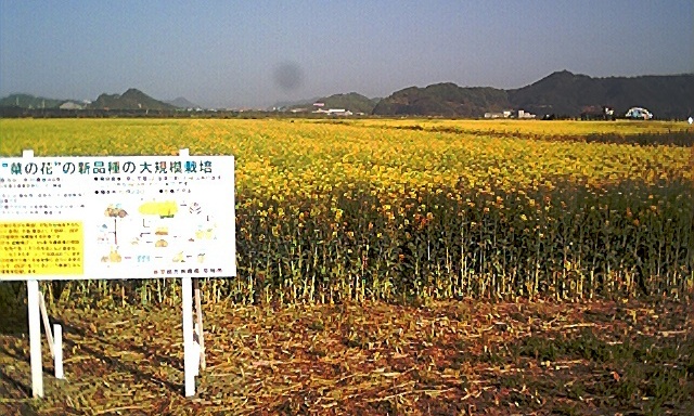 去年「100万本のひまわり」を農道空港の前の地に咲かせたが、今年はその地へ菜の花を移し咲かせたらしい。