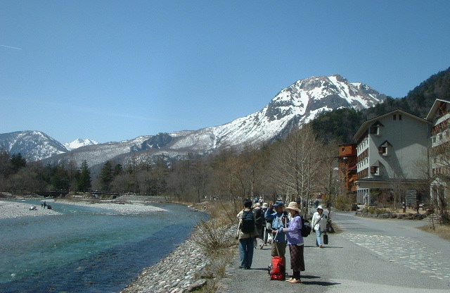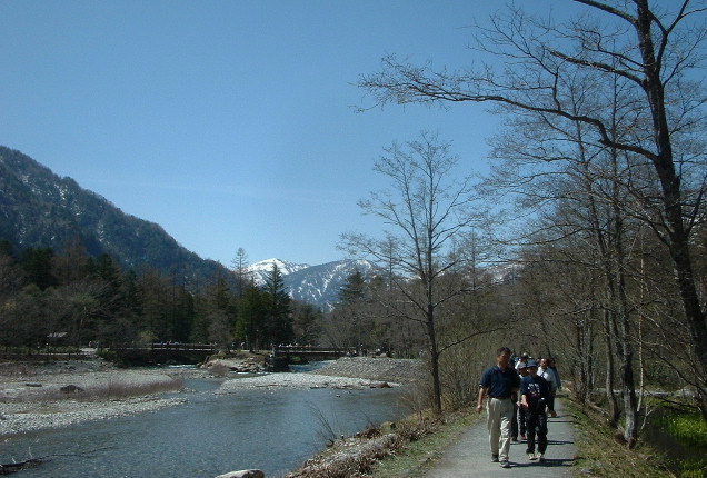 日差しをあびながら歩いていると、やがて「河童橋」が見えてきた。