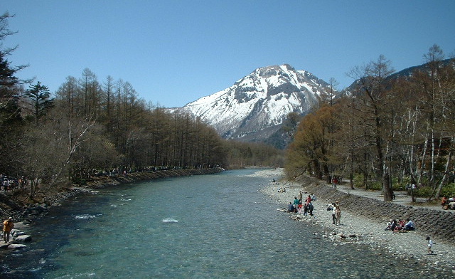 河童橋から上流側・下流側をみた。それが↑の写真2枚。