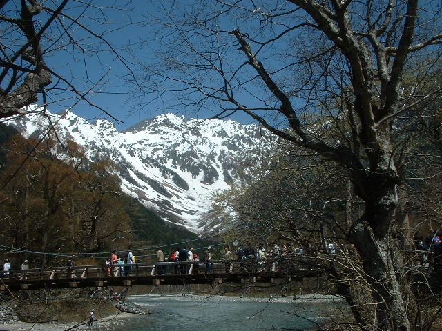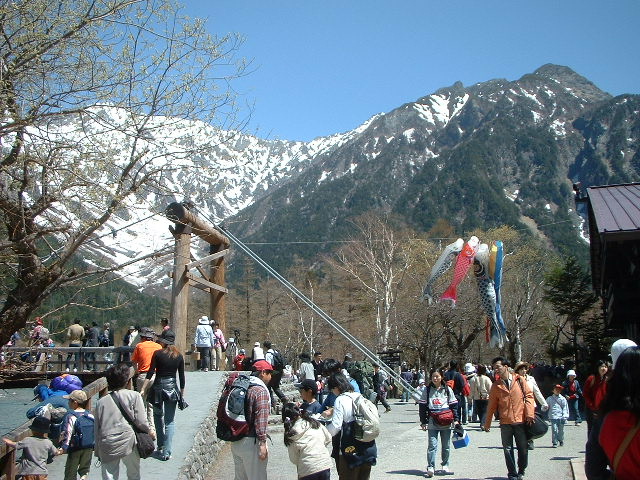 GWの日曜日、午前10:00ころの河童橋まえ。