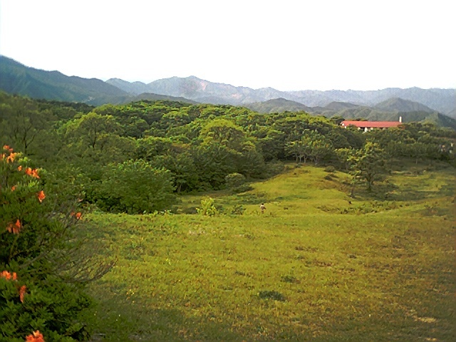 休暇村の本館うしろの草原がおわるとこ。