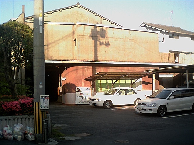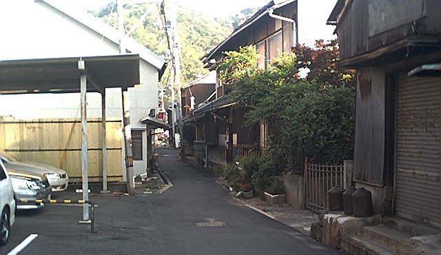 笠岡駅から狭い道を西に歩き、井笠鉄道のレールをまたぎ大和座へ入る。